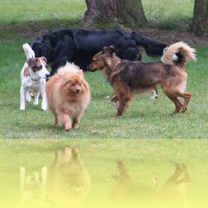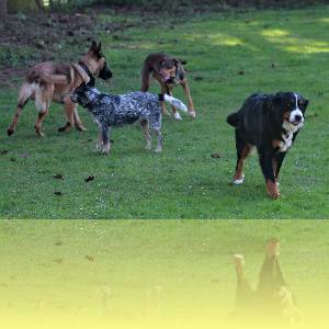 Um Ihrem Hund den Kontakt zu Artgenossen zu ermöglichen, finden zweimal im Monat Spielstunden statt. Hier versammeln sich alle möglichen Rassen, um auf einem eingezäunten Gelände spielen und toben zu können. Dabei wird stets darauf geachtet, dass weder ein Hund übermütig noch überfordert wird.